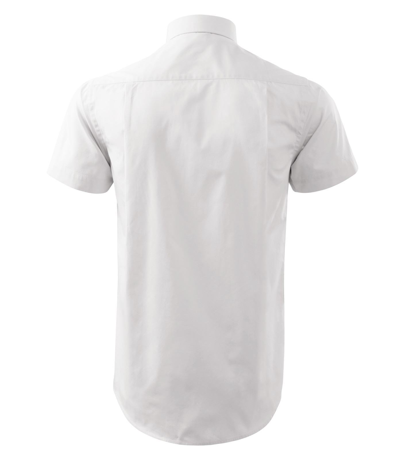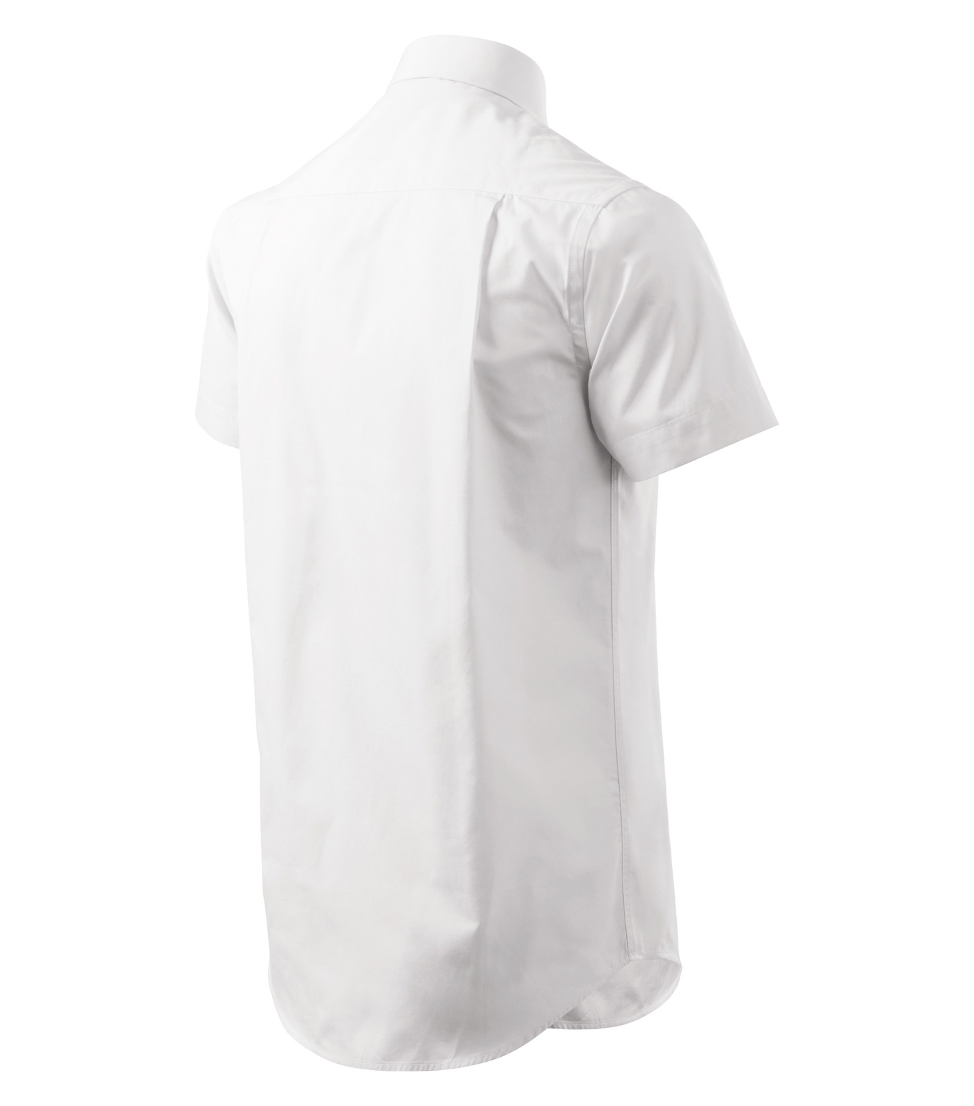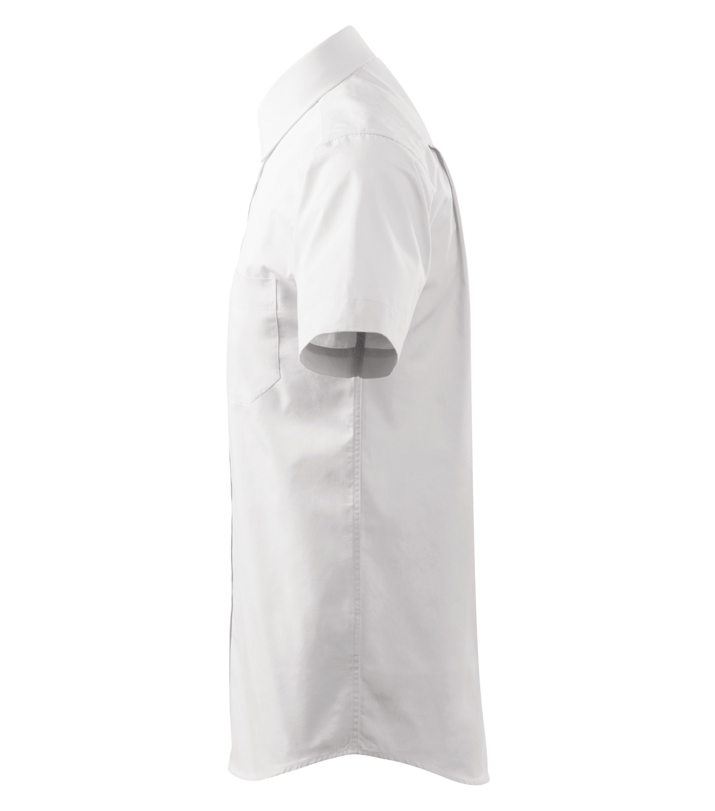Klasický střih s bočními švy, dvojité sedlo a záhyby na zadním dílu, dvoudílný košilový límec, přední kraje začištěny légou, nakládaná náprsní kapsa, knoflíčky v barvě materiálu (1 náhradní navíc)