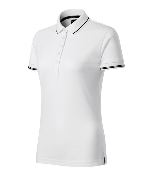 Strečový materiál udržující stálost tvaru, přiléhavý střih s bočními švy, límeček a lemy rukávů s kontrastním proužkem z žebrového úpletu 1:1, úzká léga s 5 knoflíčky v barvě materiálu, rozparky v bočních švech s kontrastní páskou, vnitřní průkrčník začištěn kontrastní páskou, zpevnění ramenních švů páskou