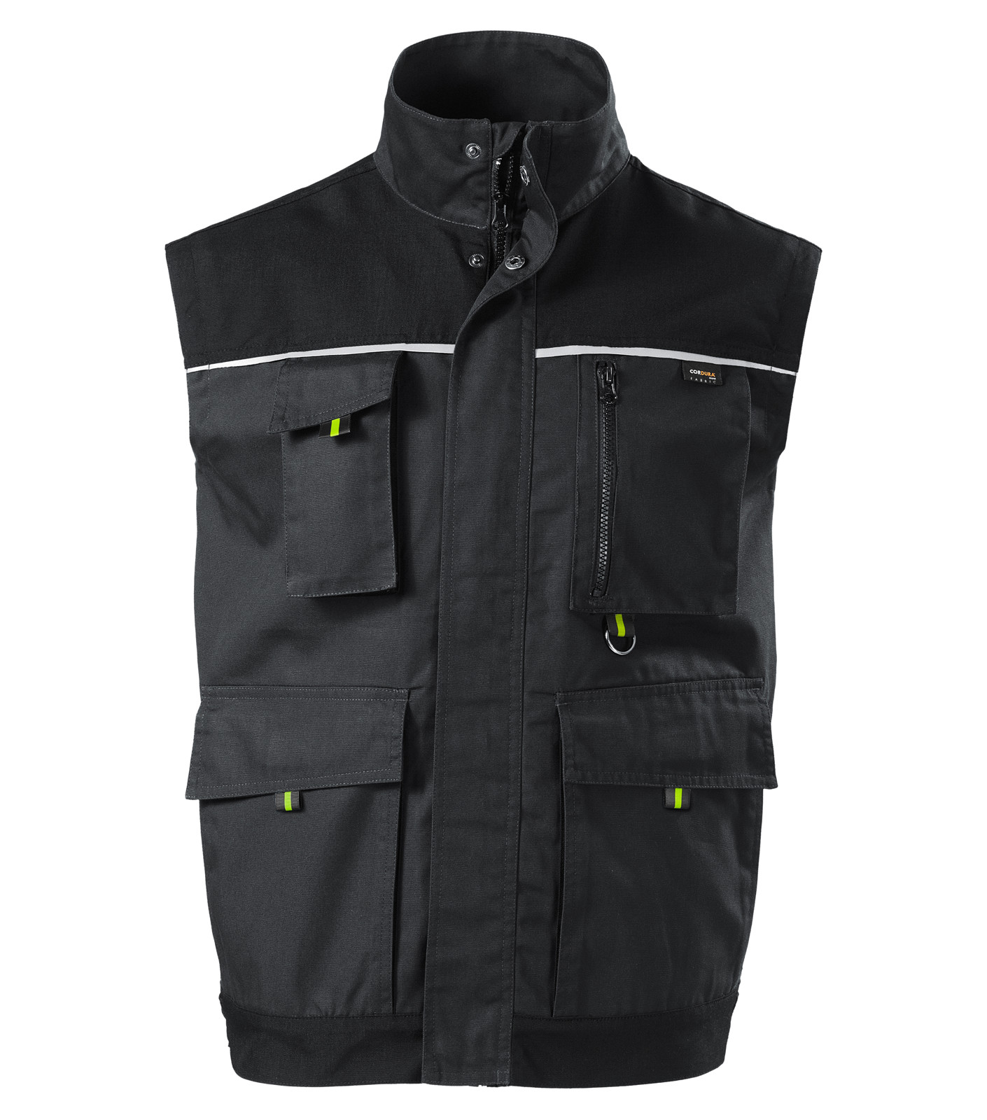 Celopropínací kostěný zip s krytkou brady a klopou, 6 multifunkčních kapes, měchové kapsy s klopou a lištové kapsy na zip, dolní okraj nastavitelný druky v boční části, kovové "D" poutko na klíče a ID karty, dvojité prošití pro vyšší odolnost, retroreflexní prvky, vysoce odolný materiál v barvě 01
