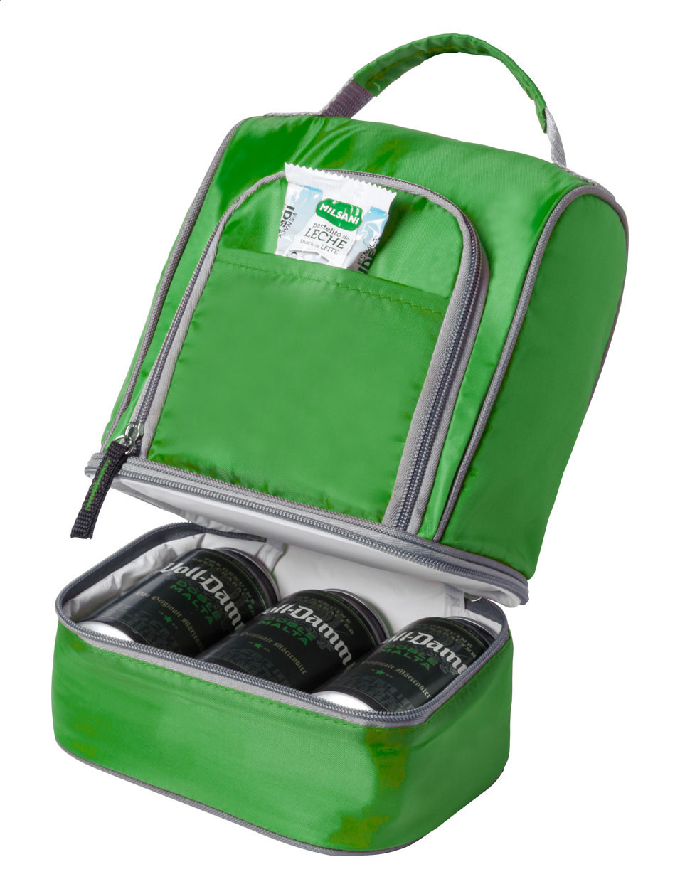 Zipped, 210D polyester cooler bag with 2 compartments.