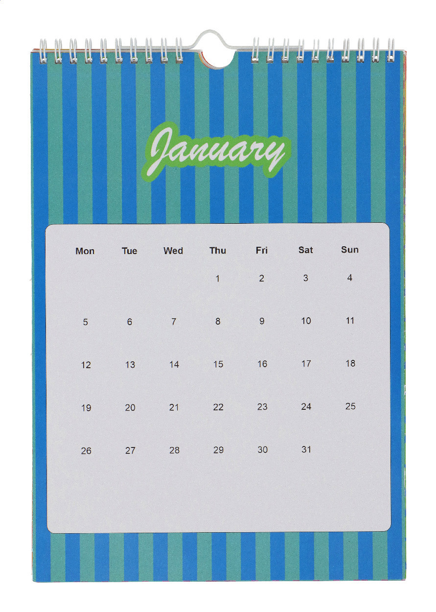 Custom made, A4 sized spiral bound wall calendar with full colour graphics and hanging hook. With 6 double sided monthly sheets and a cover page. Price includes digital printing on all pages. MOQ: 100 pcs.