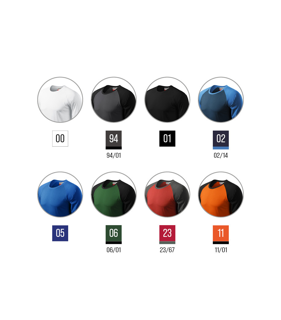 Two-colour design (except colour 00, 01, 05), cut with side seams, narrow 1:1 rib knit neckline hem with 5 % elastane, inner back neckline with a shell fabric tape, long raglan sleeves with cuffs, 1:1 rib knit cuff with 5 % elastane, Product transferred under the RIMECK® brand. Products with new and original branding can occur together in one order. Such occurrence will not be considered as a reason for complaint.