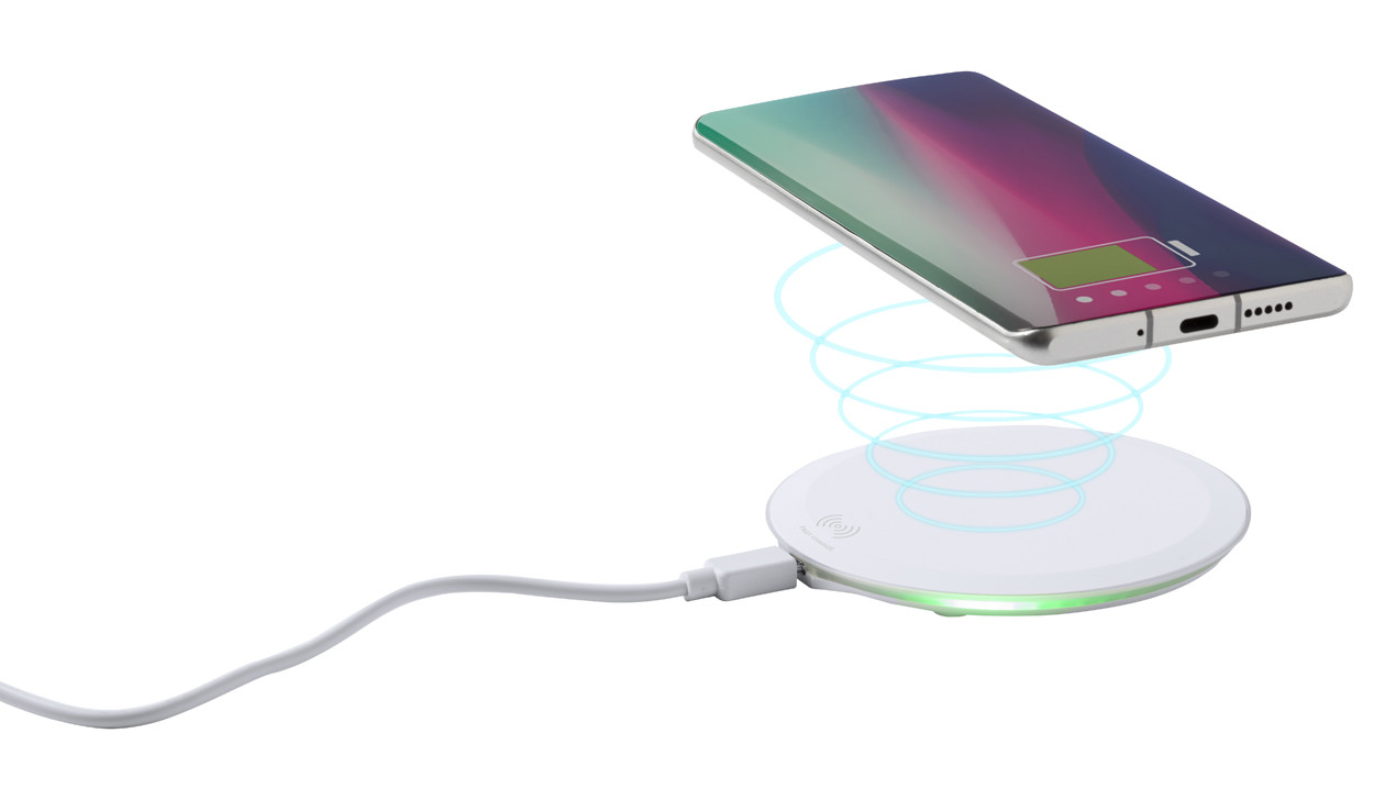 Bezdrôtová rýchlonabíjačka (10W) v plastovom púzdre s LED indikátorom nabíjania a protisklzovou základňou. Vrátane nabíjacieho USB kábla.