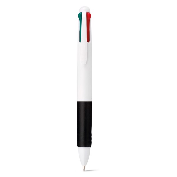 Guľôčkové pero 4 v 1 s protišmykovou rukoväťou a modrou, červenou, zelenou a čiernou náplňou. ø13 x 138 mm